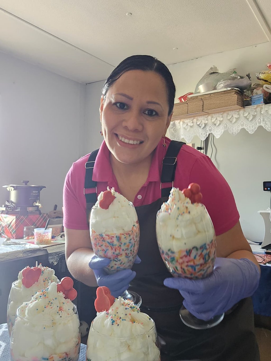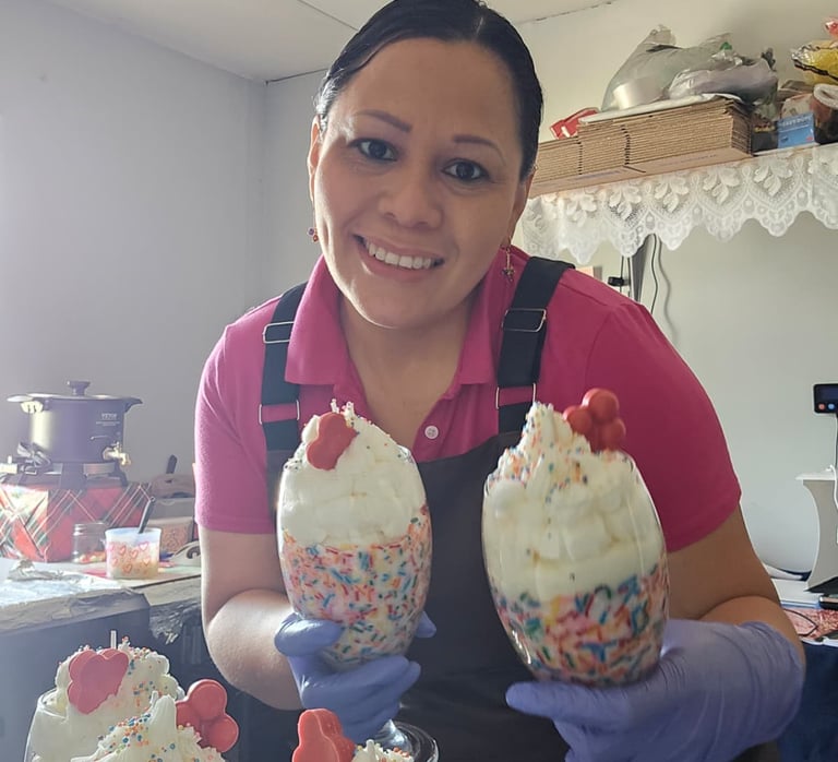 Hola mi nombre es Ana diseñadora de todos los productos naturales hechos a mano como velas jabones aromas para carro aromas para cuartos también se elabora recuerdos para eventos especiales como baby shower cumpleaños bodas